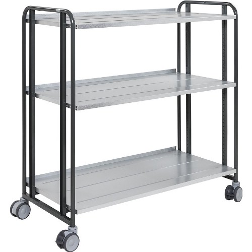Flexibel backvagn med 3 plan som kan flyttas upp och ner samt vinklas. Hyllplanen kan monteras med kant upp eller ner. Pulverlackerad med elförzinkade hyllor. 2 st fasta och 2 st länkhjul med broms 100 mm, hjulbana av polyuretan. Som tillbehör finns extra hyllplan och praktiskt handtag. Levereras omonterad.