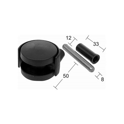 Hjul av svart nylon med 8 mm ståltapp och hylsa 12 mm.