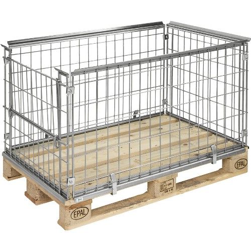 Pallram anpassad för EUR-pall 1200x800 mm. Elförzinkad. Öppning på ena kortsidan. Stapelbar. Går att fälla ihop då den inte används. Levereras omonterad.