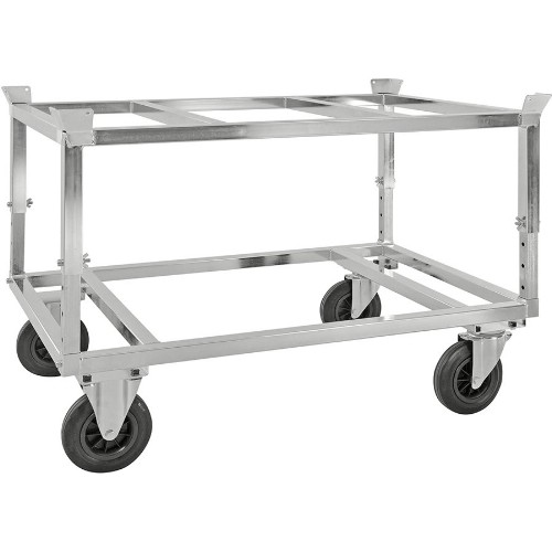Pallvagn anpassad för EUR-pall 1200x800 mm. Justerbar höjd mellan 655-835 mm. Utrustad med praktisk pallstyrning. Helsvetsad. Elförzinkad. 2 st fasta och 2 st länkhjul 200 mm massiva gummihjul.