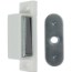 Magnetlås för skåpluckor. Magneten har ett hölje av vit plast. Plåtbricka av förzinkat stålplåt.