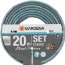 Set med trädgårdsslang och 2 snabbkopplingar varav en med stoppfunktion. Slangen är tillverkad av PVC med insida av textil, vilket gör den tryckbeständig och att den behåller formen. Hanterar tryck på upp till 22 bar. Fri från skadliga mjukgörare (ftalater) och tungmetaller. UV-beständig.