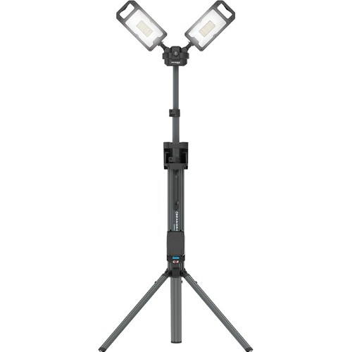 Kraftfull batteridriven LED arbetsbelysning kompatibel med Metabo/CAS (Cordless Alliance System) batterisystem. Även 18 V/20 V Li-Ion batterier från andra ledande elverktygsmärken kan användas, då krävs passande batteriadapter Scangrip Connector (ingår ej). Kan också användas för nätdrift tillsammans med nätadapter (ingår ej). Integrerat stativ med två strålkastare som kan justeras i 360° oberoende av varandra. Sammanlagt 320 LED lysdioder som ger ljusflöde på upp till 8000 lumen, med spridningsvinkel på 110°. Ljusflödet är justerbart 50-100%. Justerbar höjd mellan 1,0-2,0 m. Slimmad design, 892 mm långt i hopfällt läge och kan bäras med en hand i det inbyggda bärhandtaget. Driftstid på upp till 3,5 timmar med 18 V 5,2 Ah Li-Ion batteri.