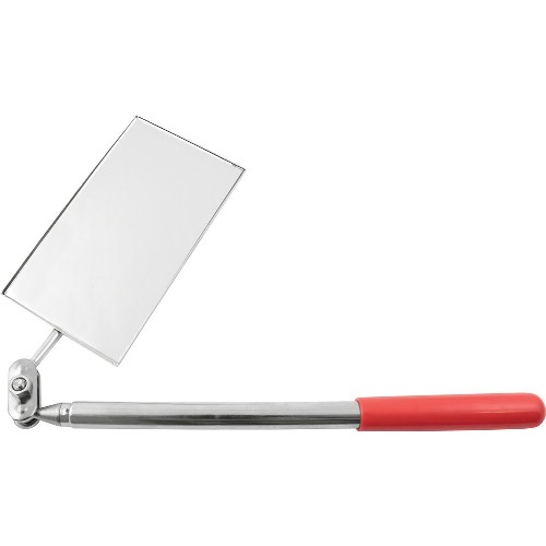 Inspektionsspegel med rektangulär spegel. Teleskopisk stav med gummerat grepp och clips.