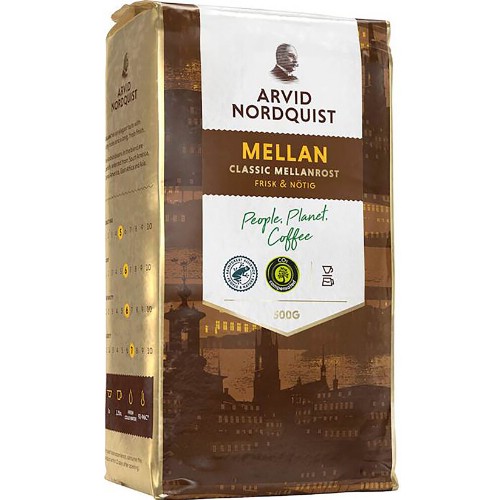 Bryggkaffe mellanrost. Frisk och fruktig smak. Doft med ton av nougat. Elegant smak med livlig syrlighet. Generöst lång och balanserad eftersmak. Mellan är ett 100% hållbart certifierat (UTZ Certified) och 100% klimatkompenserat kaffe.