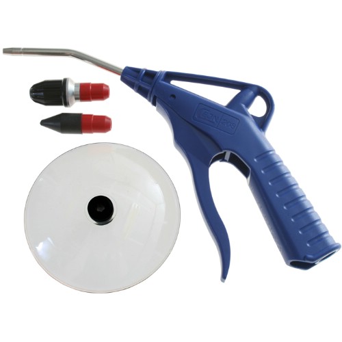 Blåspistol designad för högt flöde. Passar för hantering av både luft och icke-explosiva vätskor. Kropp tillverkad av tålig acetalplast (POM) och rör av mässing. Försedd med fast 90 mm rör. Hög blåskraft. Lättreglerat flöde. Bekvämt ergonomiskt grepp.