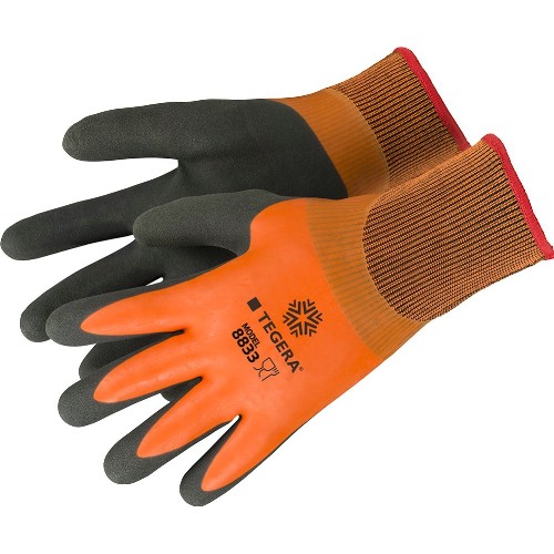 Mjuk och smidig, vinterfodrad arbetshandske med vattentät latexdoppning, lämplig att använda i kalla, våta miljöer. Sandad greppyta. Stickad mudd. Fodermaterial i akryl och polyester, 10 gg, 15 gg. Godkänd för hantering av livsmedel. Tål kontaktvärme upp till 250°C.