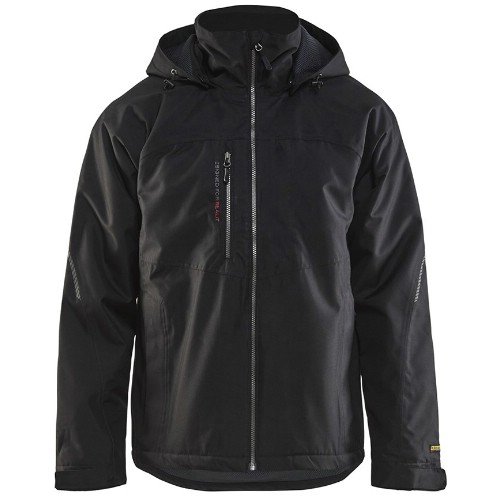 Skaljacka i vind- och vattentätt material med andasfunktion och tejpade sömmar. Envägsblixtlås i plast. Avtagbar huva med meshfoder. Bröstficka, framfickor och innerficka, alla med blixtlås. Meshfoder i polyester. Blixtlås i foder för dekalning. Justerbara ärmavslut med invändig mudd med tumgrepp. Förlängt ryggslut. Justerbar i nederkant med dragsko. Reflextryck på ärm och luva. Bluesign-certifierat material. Tvätt 40°C.