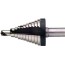 Av snabbstål. Tre-skäriga. Stegborr - 3 mm intervall - för upptagning av hål upp till 3 mm tjock plåt, aluminium eller plast. Lämnar gradfria snitt utan deformering.